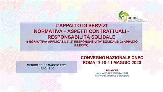 Si tiene oggi, nella splendida cornice del Seraphicum della Pontificia Facoltà Teologica San Bonaventura, la II giornata del Convegno nazionale del CNEC (il Consiglio Nazionale degli Economi di Comunità religiose). Per il nostro studio legale associato e per la nostra società di consulenza LAETA Consulting sarà presente, come sempre, l’avv. Andrea Montanari, nostro senior partner nonché membro del Gruppo gestionale e del Gruppo giuridico CNEC, che terrà una relazione in materia di appalto di servizi degli Istituti religiosi (la normativa quadro e speciale di riferimento, gli aspetti contrattuali dell’appalto di servizi, la responsabilità solidale tra committente e appaltatore, i rischi dell’appalto illecito, le best practices e la check list per le Congregazioni), come da programma allegato.
