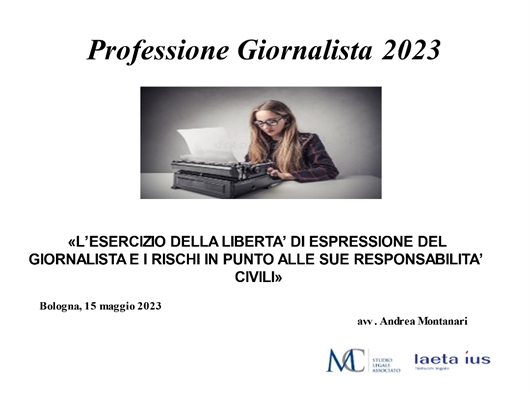 Seguiranno una serie di relazioni tra cui quella dell’avv. Andrea Montanari (di parte civilistica) di MC studio legale associato e dell’avv. Francesco Cardile (per parte penale) dello studio legale Cardile, entrambi partner del network legale : un intervento che verterà sul tema “L’esercizio della libertà di espressione del giornalista e i rischi in punto alle sue responsabilità penali e civili”.