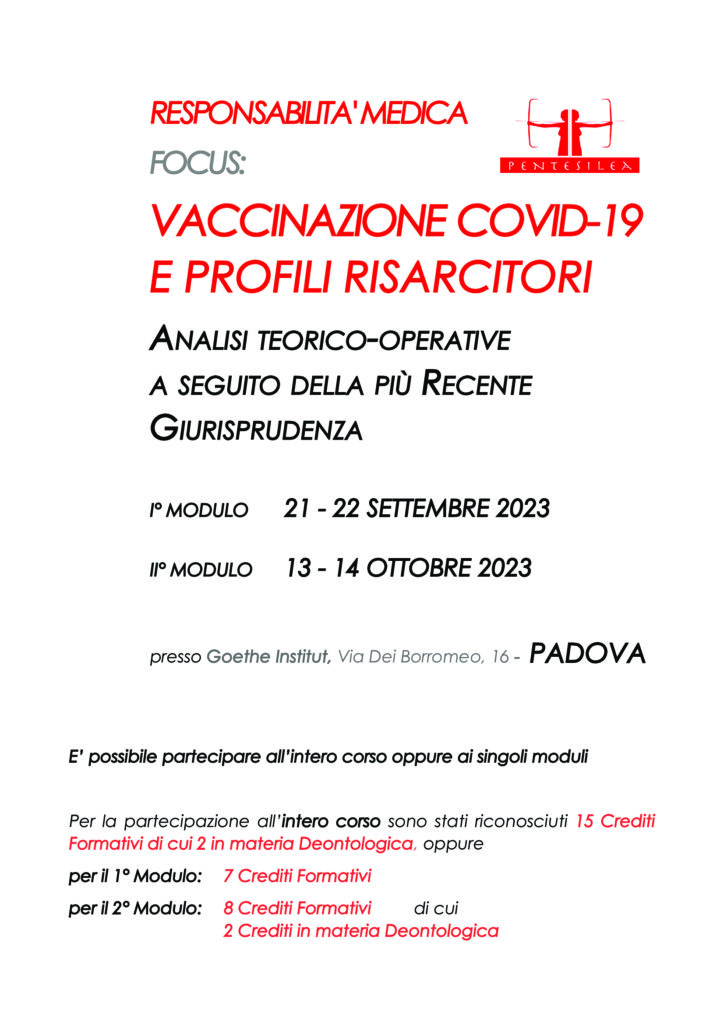 Convegno formativo PER AVVOCATI di Pentesilea a Padova. “Responsabilità medica: vaccinazione Covid -19 e profili risarcitori ” Analisi Teorico – Operative a seguito della più Recente Giurisprudenza.